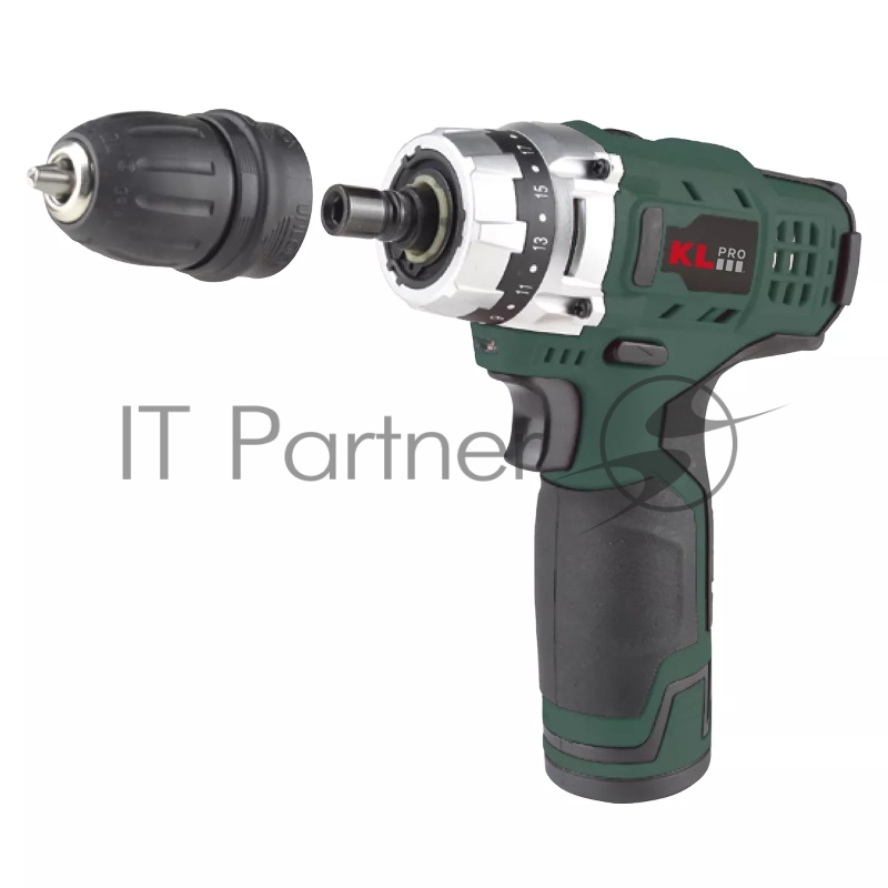 Профессиональный аккумуляторный шуруповерт KLPRO KLNM1020S (10,8В, LI-ion 2.0Ач, 3 сменные насадки, 19 ступений, 30Нм)
