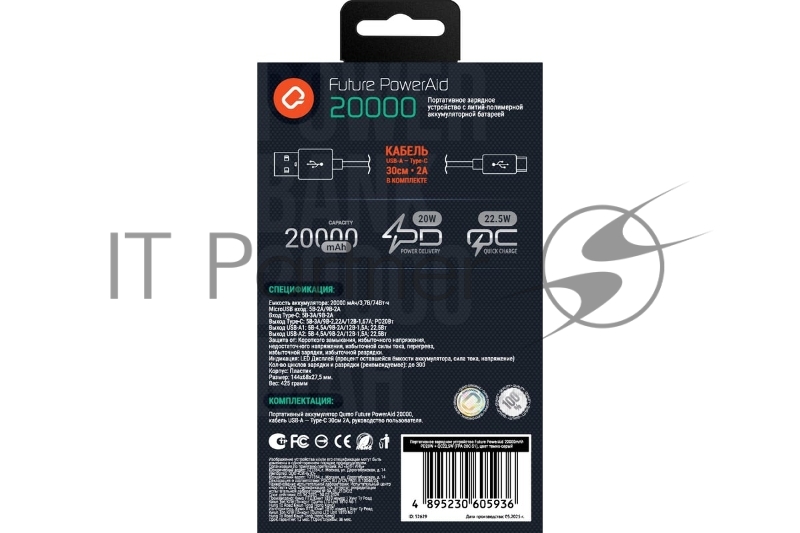 Портативное зарядное устройство QUMO Future PowerAid 20000mAh темно-серый FPA-20C-S1