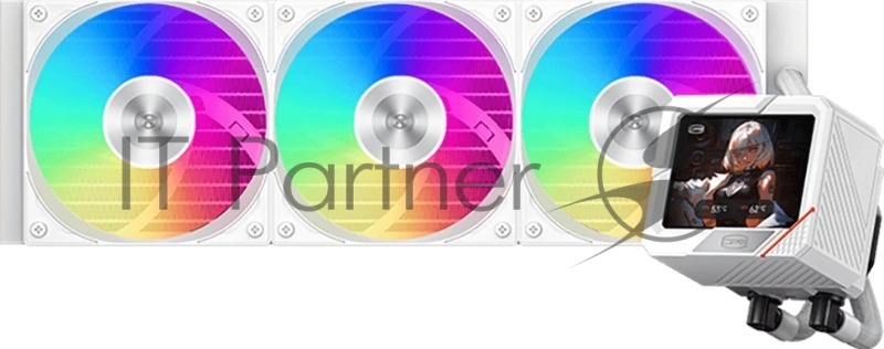 Система охлаждения PCCooler GT360 ARGB Display WH (310W, 360mm, LED temp., White, ARGB/ Fans: 3x120mm, 99CFM, 41.5dBA, 3000RPM/ Pump 15dBA, 2600RPM, Rad thickness 27mm/ S: 1851, 1700, 1200, 115X, AM5, AM4)