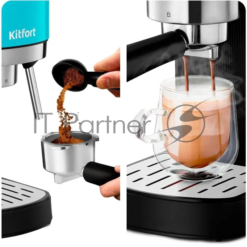 Кофеварка рожковая Kitfort КТ-7461 1350Вт бирюзовый/черный