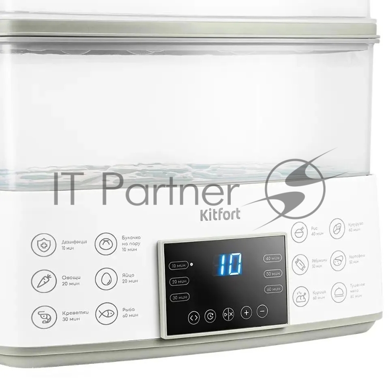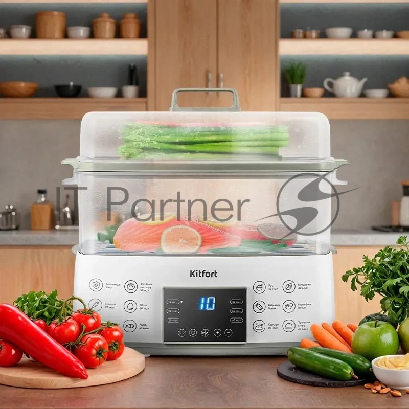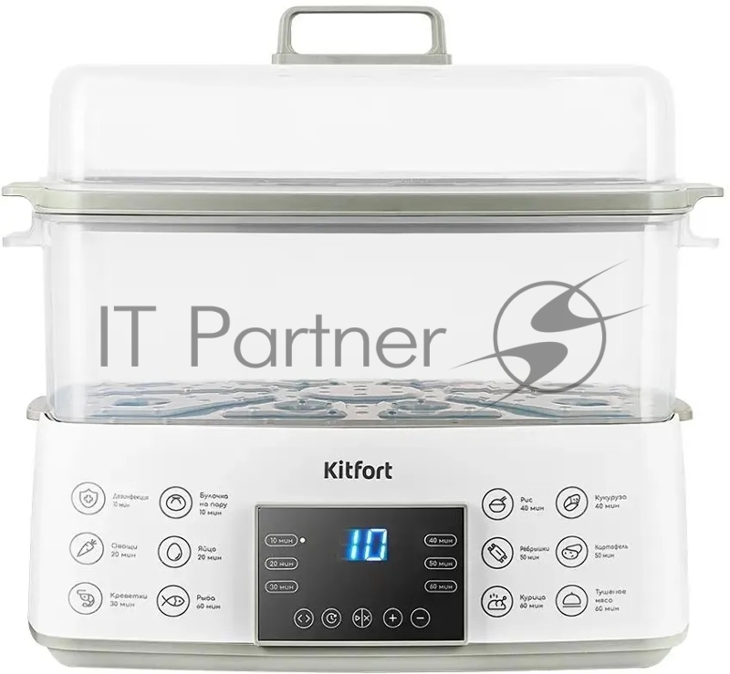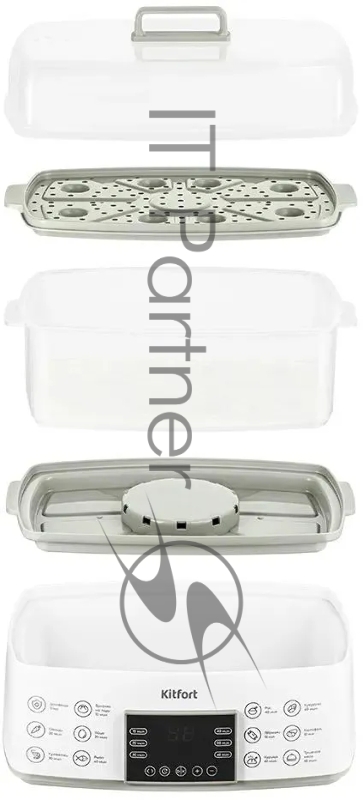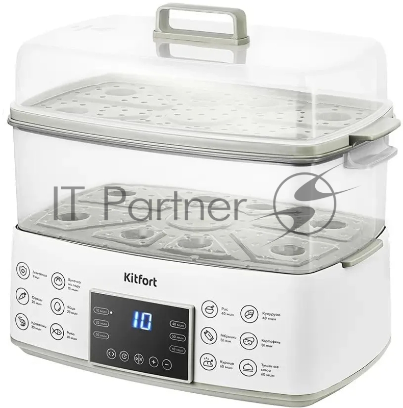Пароварка Kitfort КТ-6431 2ярус. 800Вт белый/серый