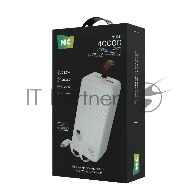Внешний аккумулятор MORE CHOICE (4620202552846) PB59-40 40000mAh 1USB+1Type-C+1micro USB 3.0A 22.5W PD20WP, белый
