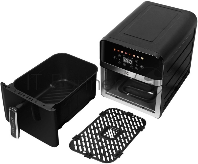 Аэрогриль BQ AF9011S Black. Мощность 2000 Вт / Объем 9 л / Сенсорное управление / 8 автоматических программ / Антипригарное покрытие Non-Stick PRO / 4 в 1: гриль, жарка, выпечка, запекание / Диапазон температур нагрева от 60 до 200 °С / Таймер от 1 д