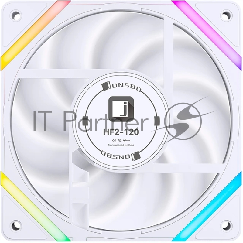 Кулер для корпуса/ Case Cooler JONSBO HF2-120WR Reverse (120x120x25mm, 4-pin PWM, ARGB, 63.3CFM, 29.5dBA, 2200RPM, White)