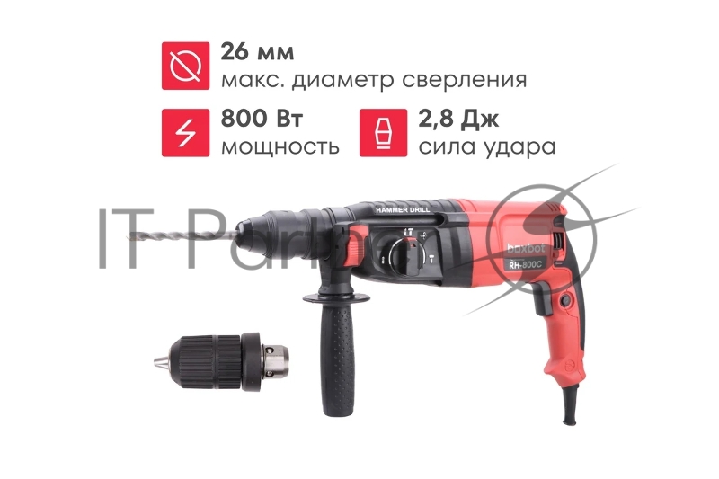 Перфоратор Boxbot RH-800С, 800 Вт, 2.8 Дж, кейс, быстросъёмный патрон SDS+ и кулачковый патрон в комплекте