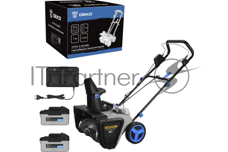 Снегоуборщик аккумуляторный DEKO ST412-6, 2*20В, 2*6.0Ач, 50см, 2 фары