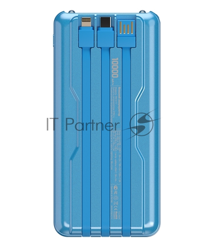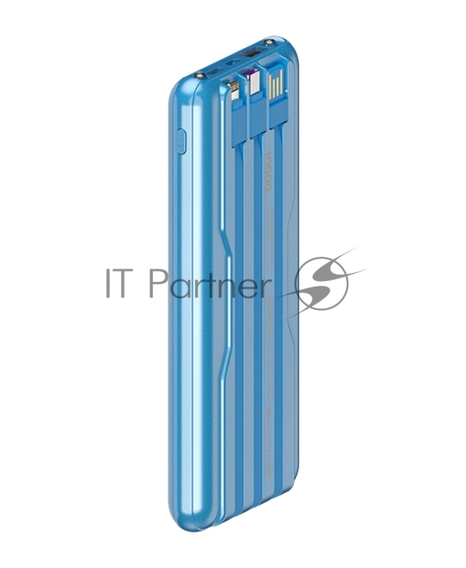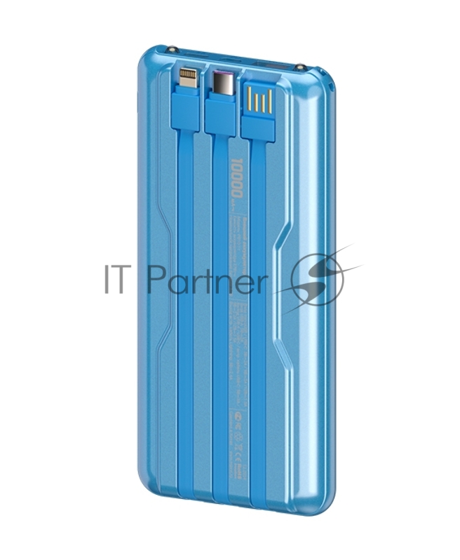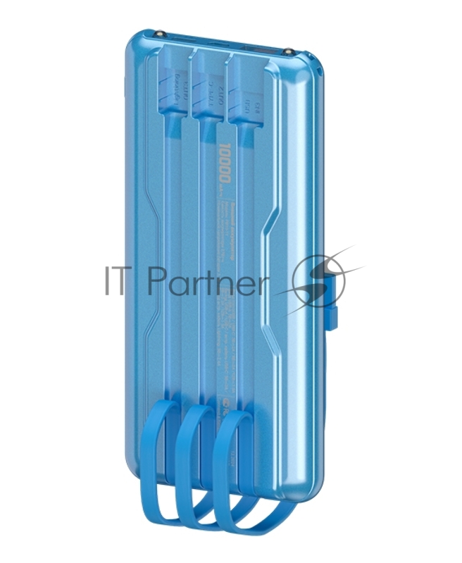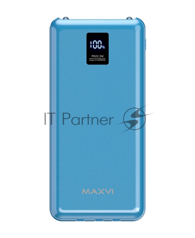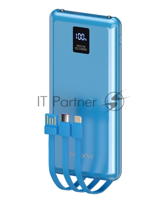 Внешний аккумулятор Maxvi PB10-11 10000мАч blue 3A, встроенные кабели USB A/Type-C/Lightning