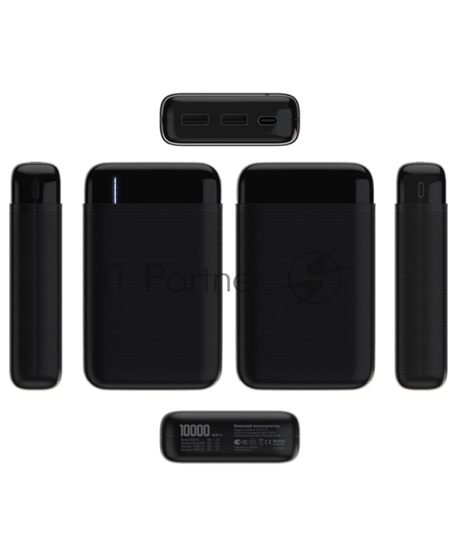 Внешний аккумулятор Maxvi PB10-07 10000мАч, 2A, 2хUSB/Type-C/MicroUSB