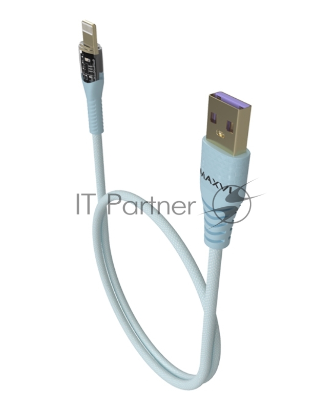 Дата-кабель Maxvi MC-31L USB-Lightning 2.4А, прозрачный корпус, LED подсветка, 1.2м, sky blue