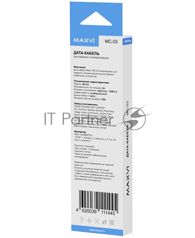 Кабели, переходники, разветвители MAXVI MC-03 white