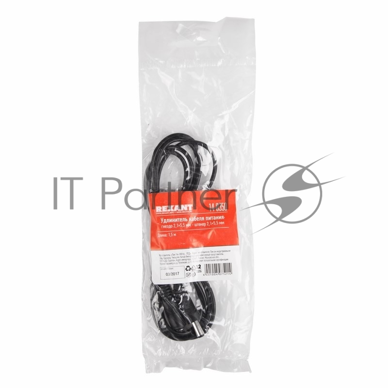 Удлинитель кабеля питания гнездо-штекер (2,1х5,5 мм) 1,5 м Rexant