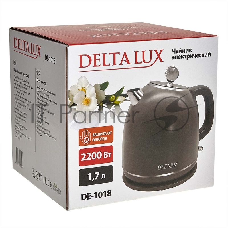 Чайник электрический Delta LUX DE-1018 (1,7 л. металл/пластик) серый