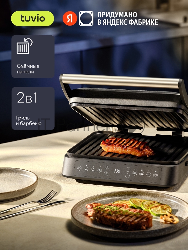 Гриль электрический с раздельной регулировкой панелей Tuvio TG01DM, чёрный