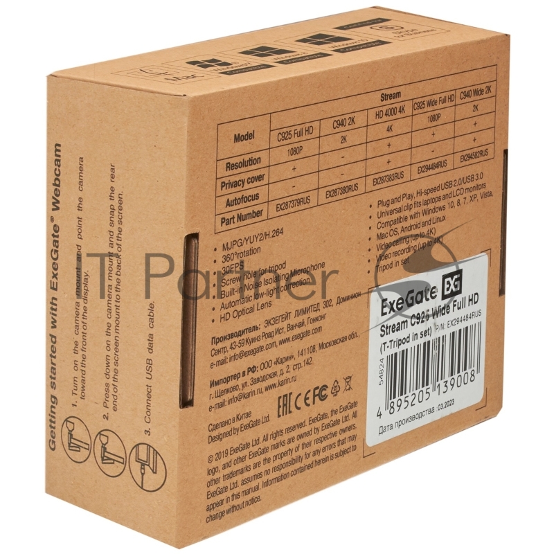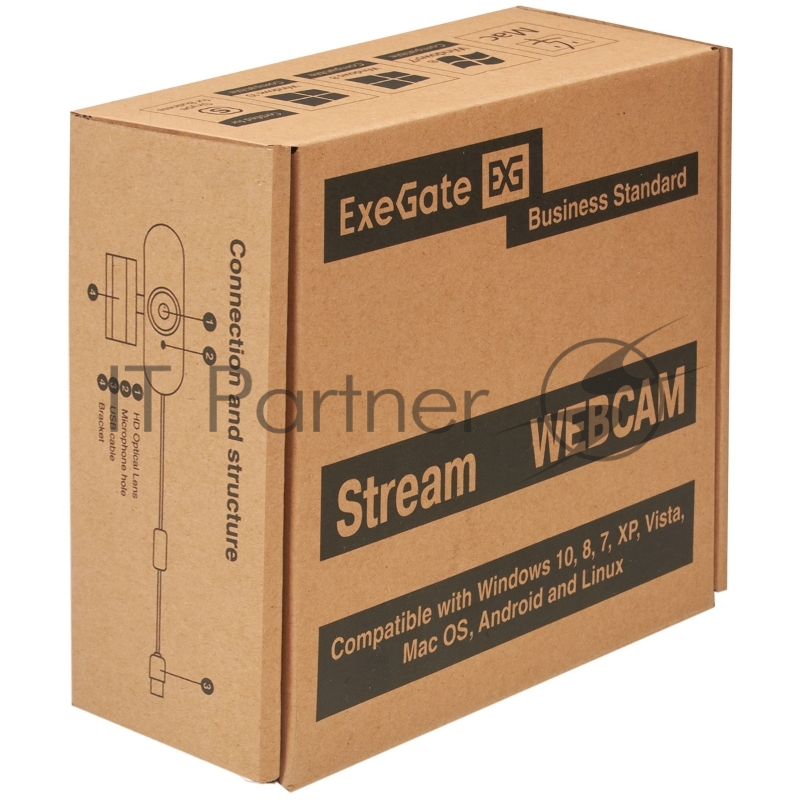Веб-камера широкоугольная ExeGate Stream C925 Wide Full HD (2Мп, 1920х1080, 1080P,30fps, защитная шторка, фиксированный фокус, широкоугольный 4-линзовый объектив 79°, микрофон с шумоподавлением, универсальное крепление, USB, кабель 1,5 м, Windows 7/8