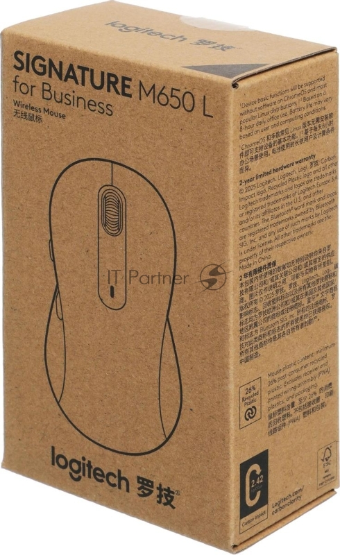 Мышь Logitech M650 L черный оптическая 4000dpi беспров. BT/Radio USB (910-006350)