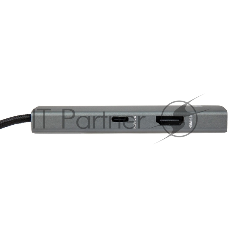 USB-концентратор HIPER Docking station USB-C HUB 6in1 (1*USB-C 100W PD, 1*HDMI 4K@60Hz, 2*USB-A 3.0 (5Gbps data), 1*USB-C 3.0 (5Gbps data), 1*RJ45 Gb)