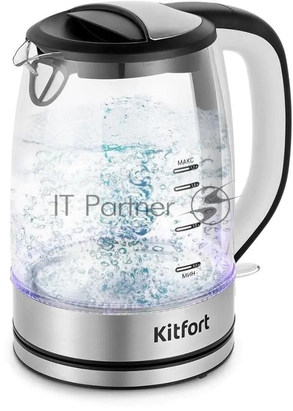 Чайник электрический Kitfort КТ-6628 1.7л. 2200Вт нержавеющая сталь/черный корпус: нерж.сталь/стекло