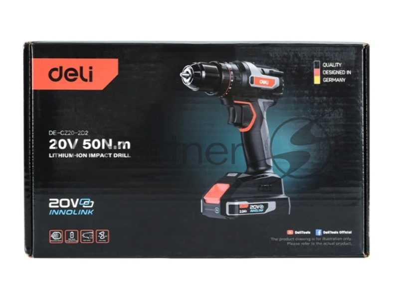 Дрель-шуруповерт аккумуляторная ударная Deli DE-CZ20-1 (Без АКБ и ЗУ, 20В, 13мм, 70Нм, картон)