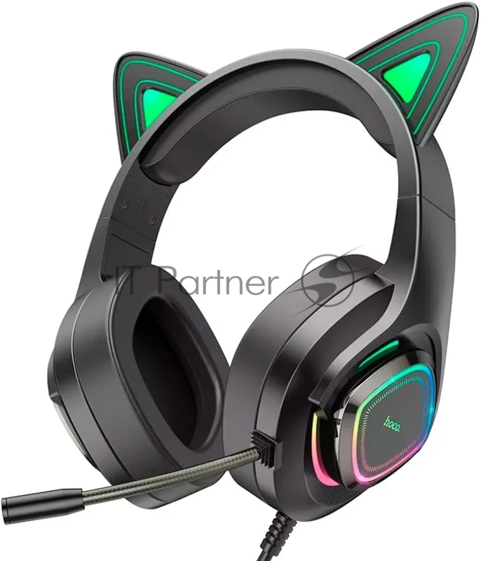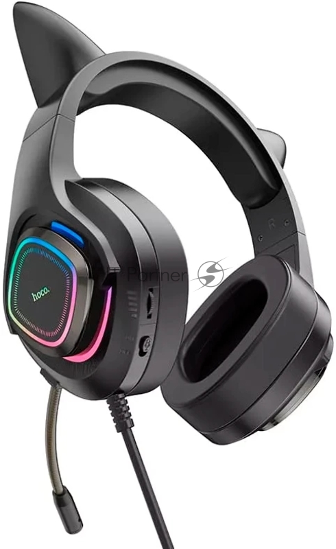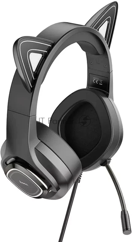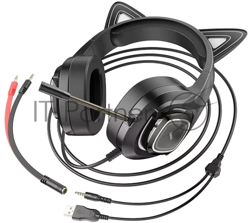 Наушники с микрофоном Hoco W107 Cute cat черный 2м мониторные USB оголовье (W107)