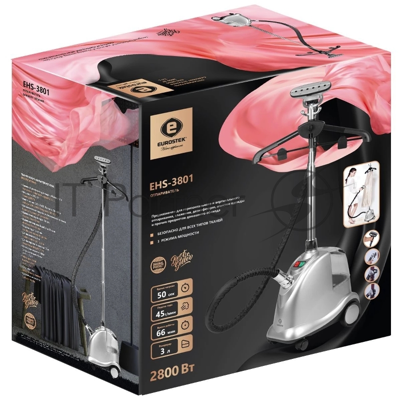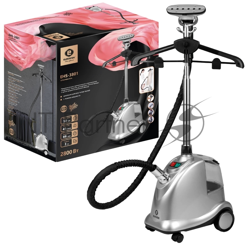Отпариватель Eurostek EHS-3801 серебристый, 2800 Вт, 45 г/мин, 3 л