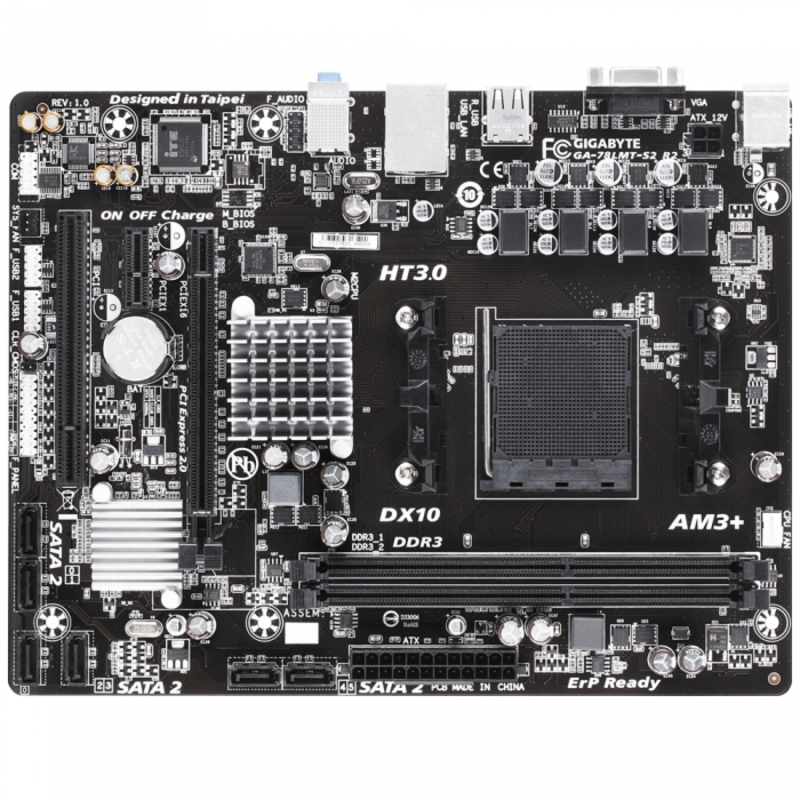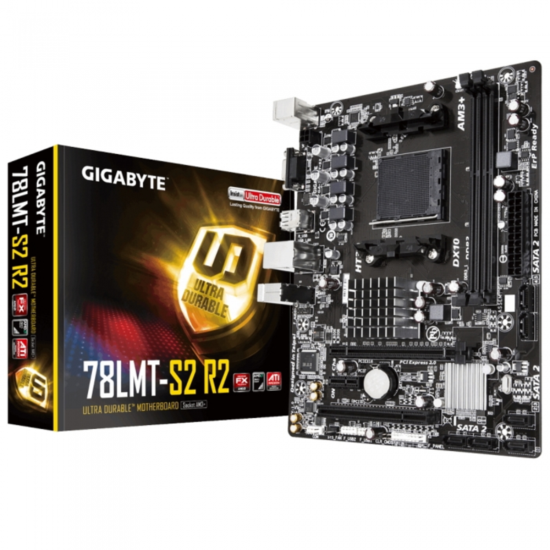 Мат. плата SocketAM3+ GIGABYTE GA-78LMT-S2 R2 (AMD 760G, 2xDDR3, SATA II, RAID, PCI-E, D-Sub, 1Гбит LAN, USB2.0, mATX)