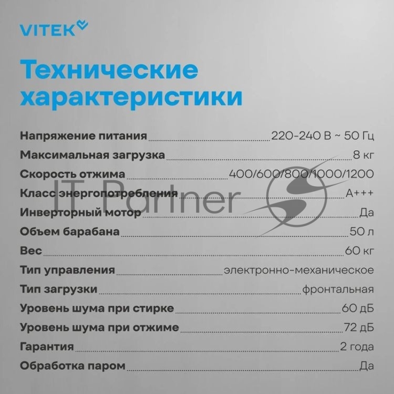 Стиральная машина Vitek VT-WME8203 класс: A+++ загр.фронтальная макс.:8кг белый инвертор