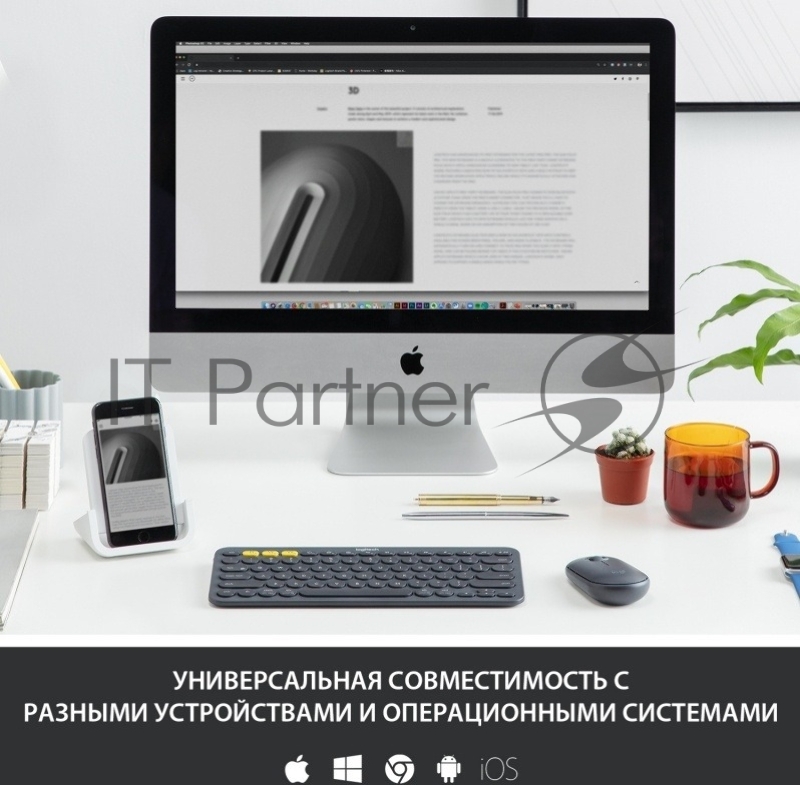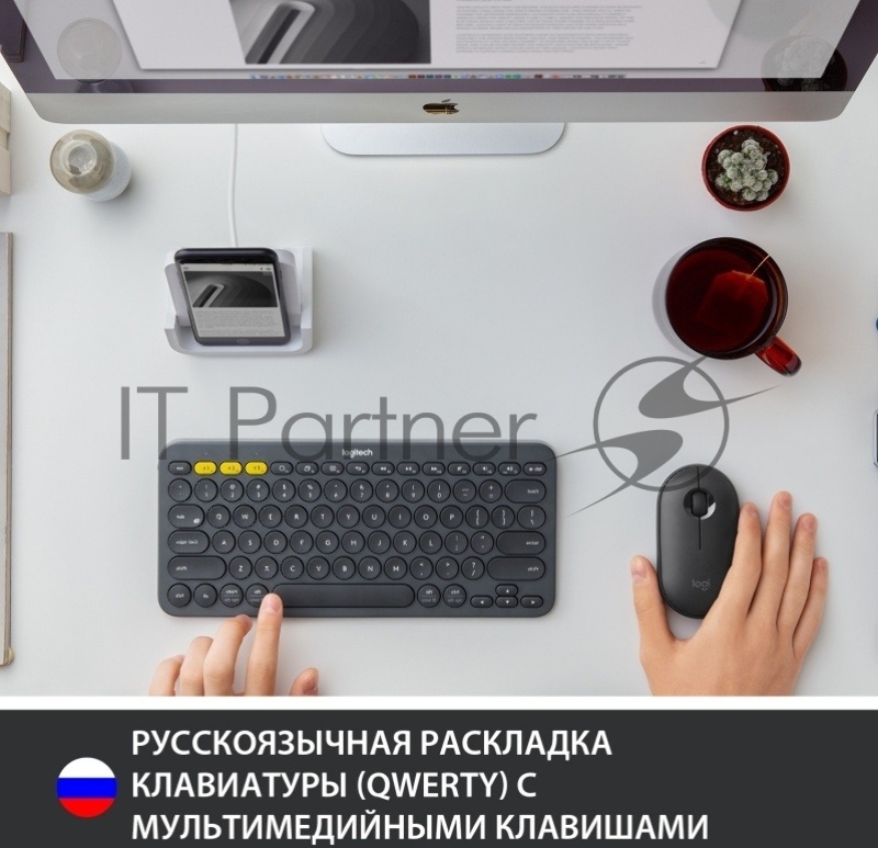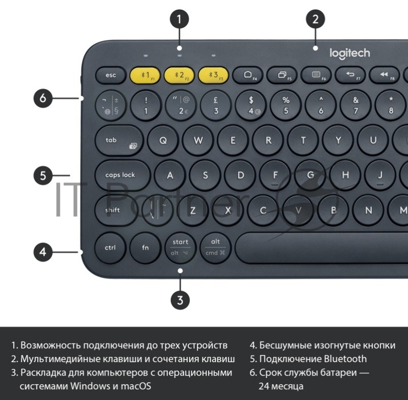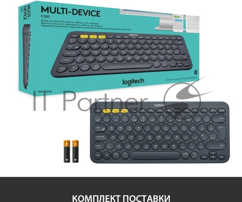 Клавиатура беспроводная Logitech K380 (920-007590) темно-серый (неоригинальная гравировка)