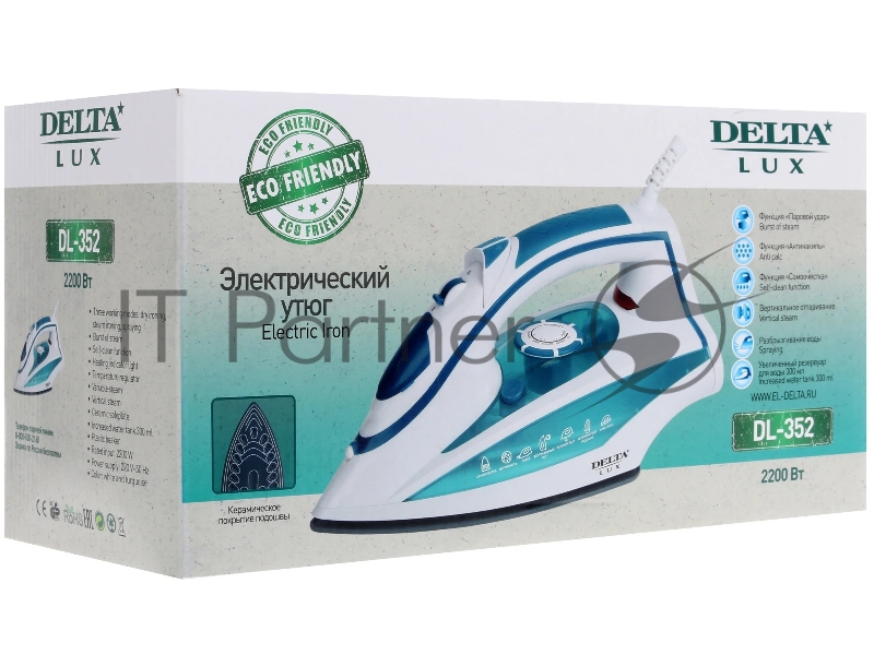 Купить утюг Delta DL-352 белый с бирюзовым в Коврове. Забрать в магазине "Ваш Компьютер" г.Ковров пр-т Ленина 20