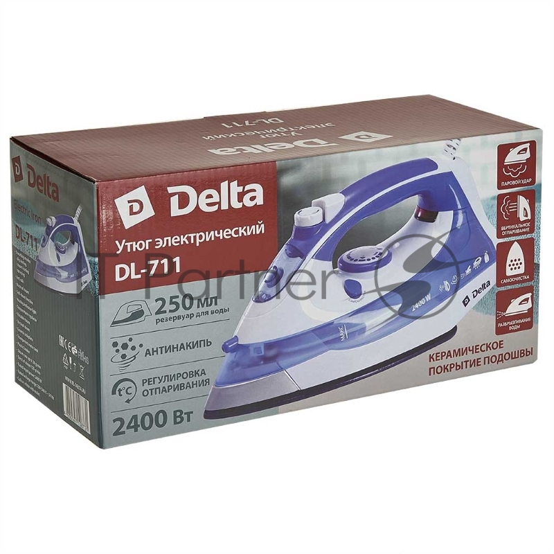 Утюг Delta DL-711 белый с фиолетовым, 2400 Вт, 20 г/мин, 120 г/мин, 250 мл