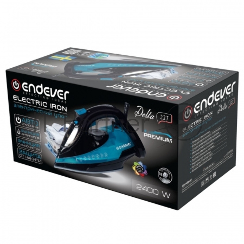 Утюг Endever Delta-227 черный/лазурно-синий, 2400 Вт, 50 г/мин, 150 г/мин, 330 мл