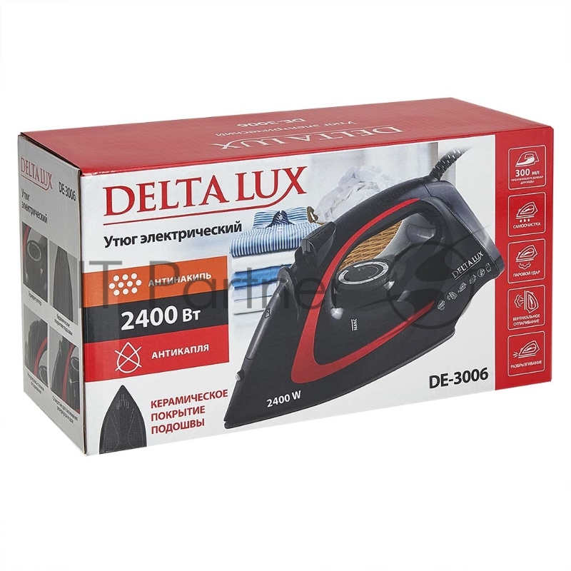 Утюг DELTA LUX DE-3006 черный/красный, 2400 Вт, 30 г/мин, 150 г/мин, 300 мл