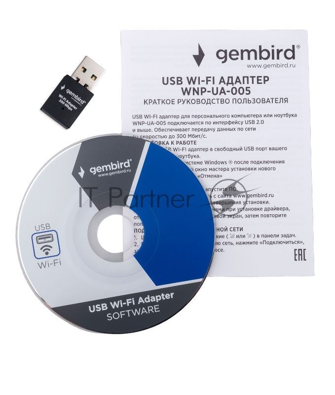 Сетевой адаптер Wi-Fi Gembird WNP-UA-005 300Мбит, USB, 802.11b/g/n
