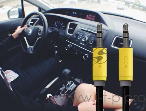 Кабель Greenconnect Кабель аудио 1.0m jack 3,5mm/jack 3,5mm черный, желтые коннекторы, 28 AWG, M/M, экран, стерео(GCR-AVC014-1.0m)