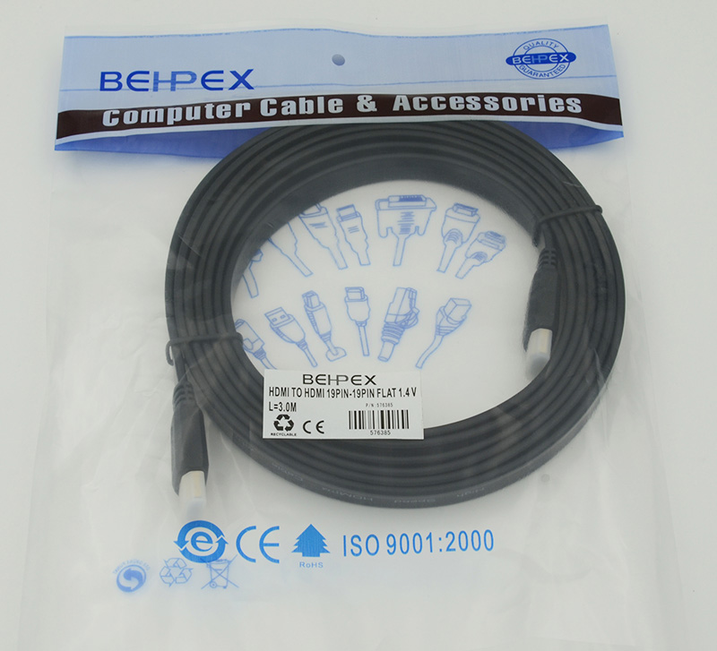 Описание: HDMI кабель для подключений компьютеров, ноутбуков Blu-Ray плееров и прочего оборудования к мониторам, телевизорам и проектора. Плоское сечение позволяет прокладывать кабель через узкие щели и трудно доступные места. Длина кабеля 3 метра.