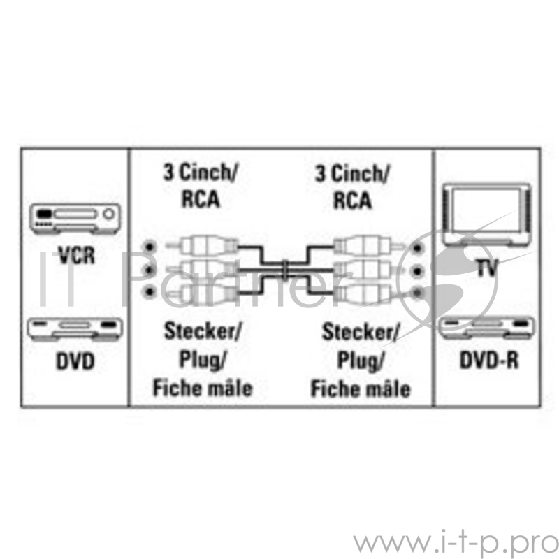 Описание: Тройной кабель RCA для передачи аудио и видеосигнала от DVD плеера или видеомагнитофона к телевизору или проектору.