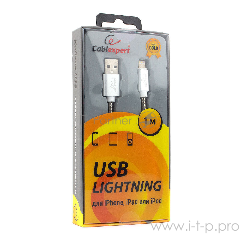 Кабель Cablexpert Кабель для Apple CC-G-APUSB02S-1M, AM/Lightning, серия Gold, длина 1м, серебро, блистер