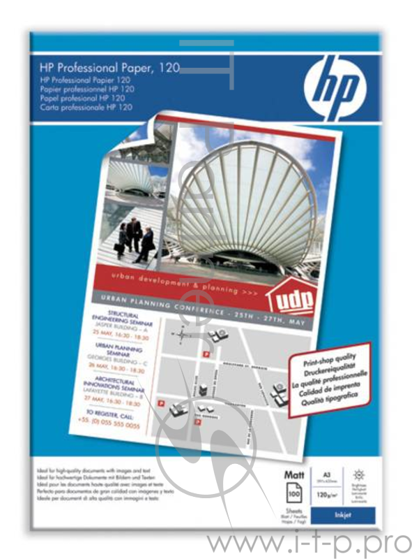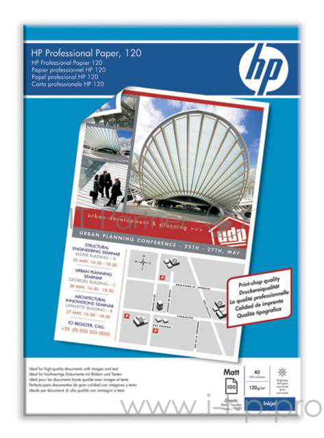 Фотобумага HP Двухсторонняя Высококачественная Профессиональная Матовая, 120г/м2, A3 (29,7X42)/100л.
