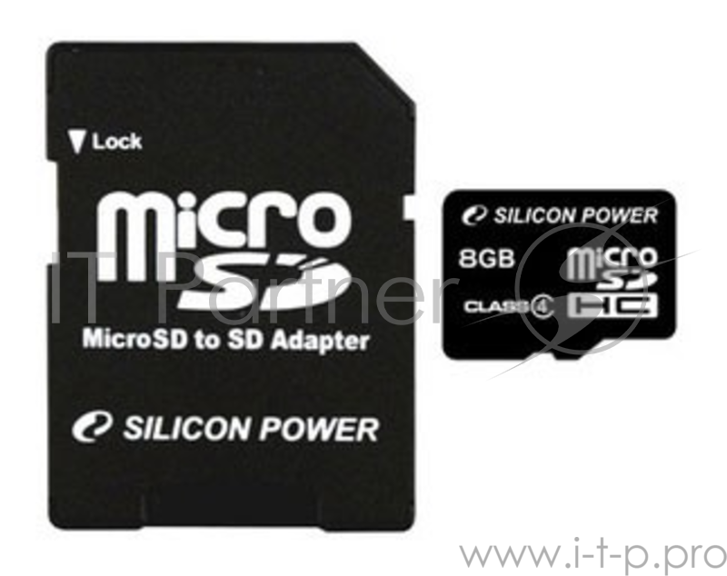 Флеш Карта MicroSD 8Gb Silicon Power Class4 SP008GBSTH004V10-SP + adapter