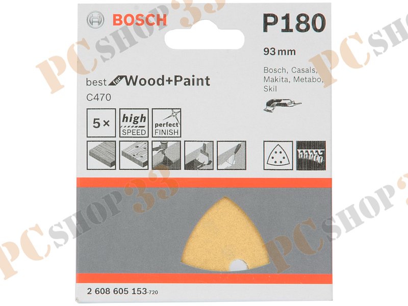 Аксессуар к шлифовальной машине шлифлист Bosch 2608605153, для дельташлифмашин, 93мм, зерно 180 (5шт./уп.)