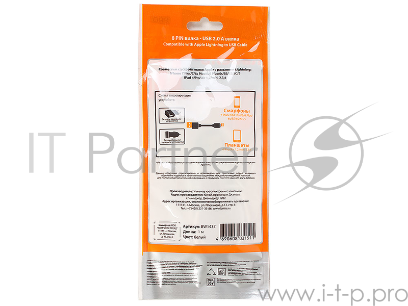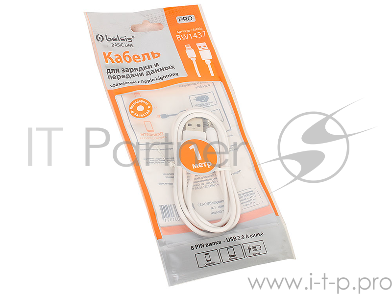 Кабель Belsis Lightning - USB А, 1м, белый BW 1437