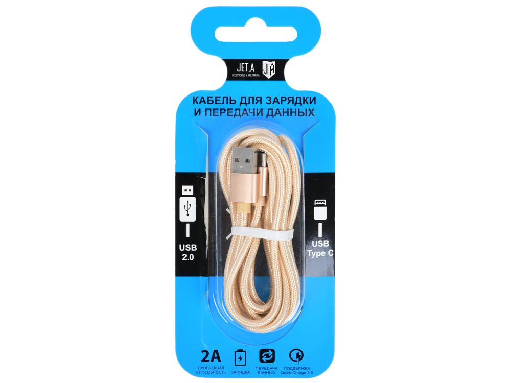 Кабель для зарядки и передачи данных Jet.A JA-DC32 2м золотой (в оплётке,USB2.0/USB TypeC,QC3.0, 2A)