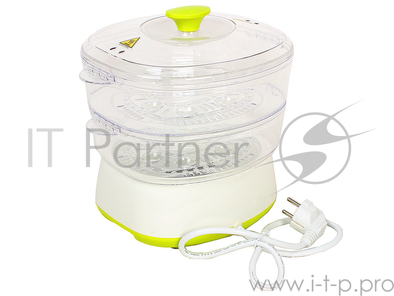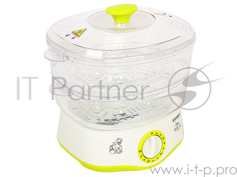 Пароварка Endever Vita-161, белый/зеленый, мощность 800 Вт, объем 4 л, два уровня готовки, индикатор питания, таймер с отключением до 60 минут