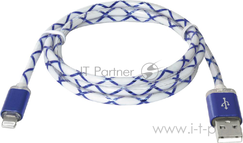 Кабель Defender USB кабель ACH03-03LT голубой, LED, USB-Lightning 1м (87551)