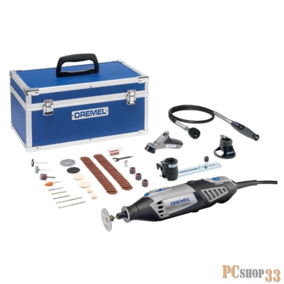 DREMEL® 4000, 57 высококачественных насадок Dremel, Гибкий вал , Линейный фрезерный циркуль ,Направляющая для резки, Рукоятка для точных работ, кейс, Держатель,