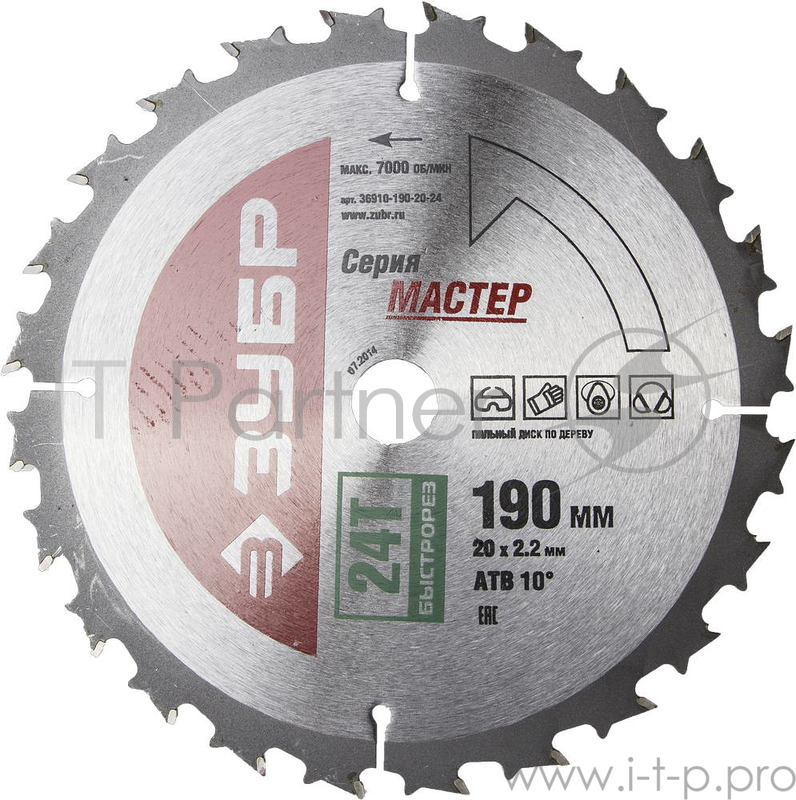 Круг пильный твердосплавный ЗУБР 36910-190-20-24 МАСТЕР быстрый рез по дереву 190x20 24T