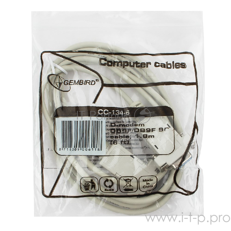Кабель Нуль-модемный кабель RS-232 9pin F - 9pin F 1.8м Gembird CC-134-6
