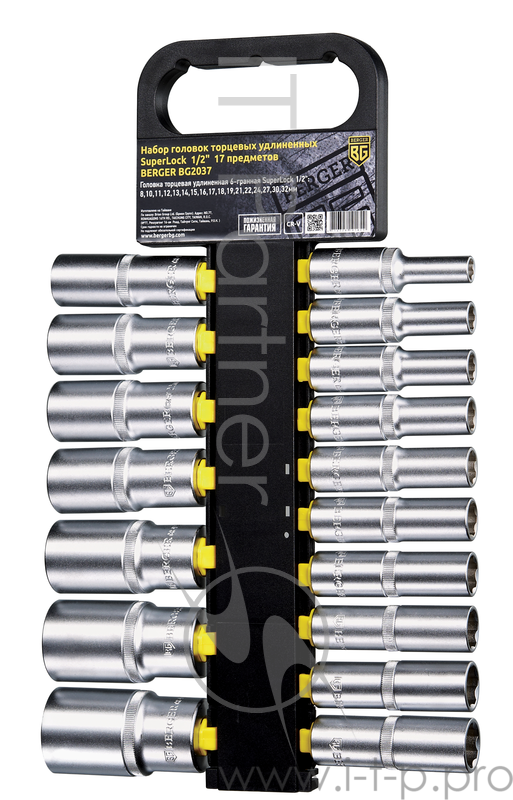 Набор головок BERGER BG2037 торцевых удлиненных 1/2'' superlock 17предметов