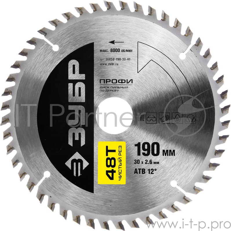 Круг пильный твердосплавный ЗУБР 36852-305-30-60 ПРОФИ чистый рез по дереву 60T 305х30мм