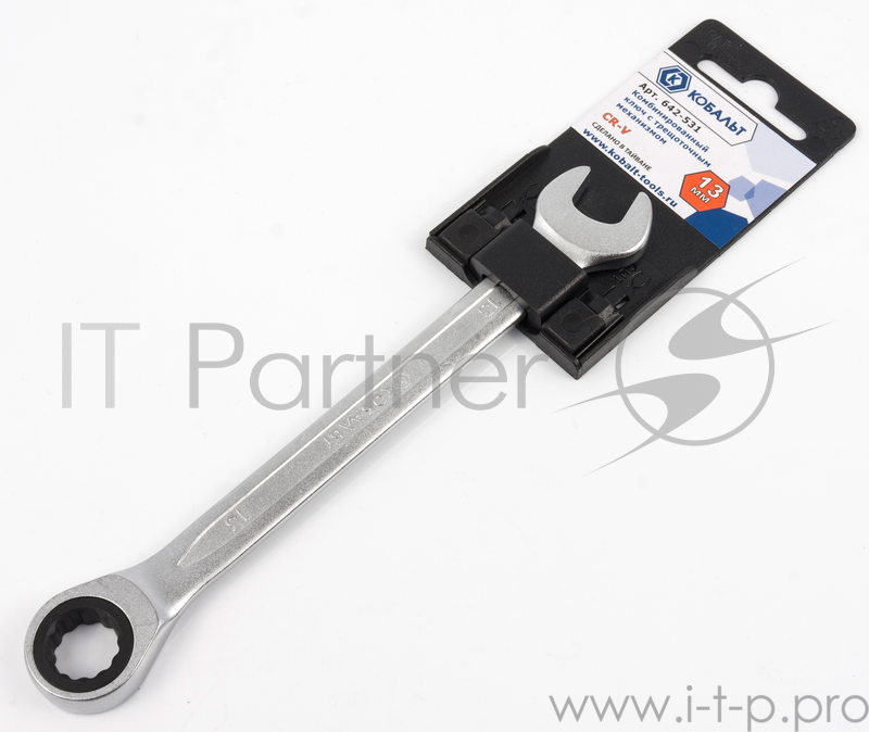 Ключ КОБАЛЬТ 642-531 комбинированный трещоточный 13мм CrV 1шт. подвес