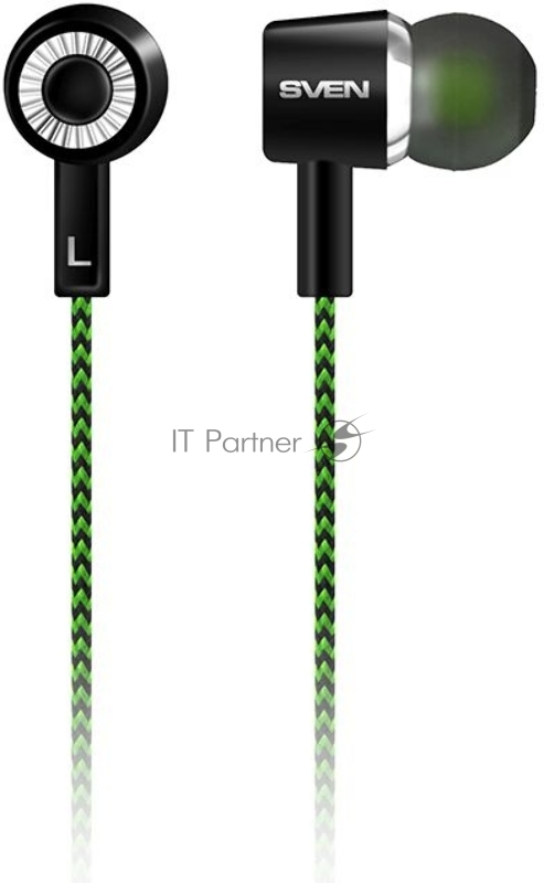 Наушники SVEN E-107, черный-зелёный наушиники {103 Дб, mini jack 3.5 mm}